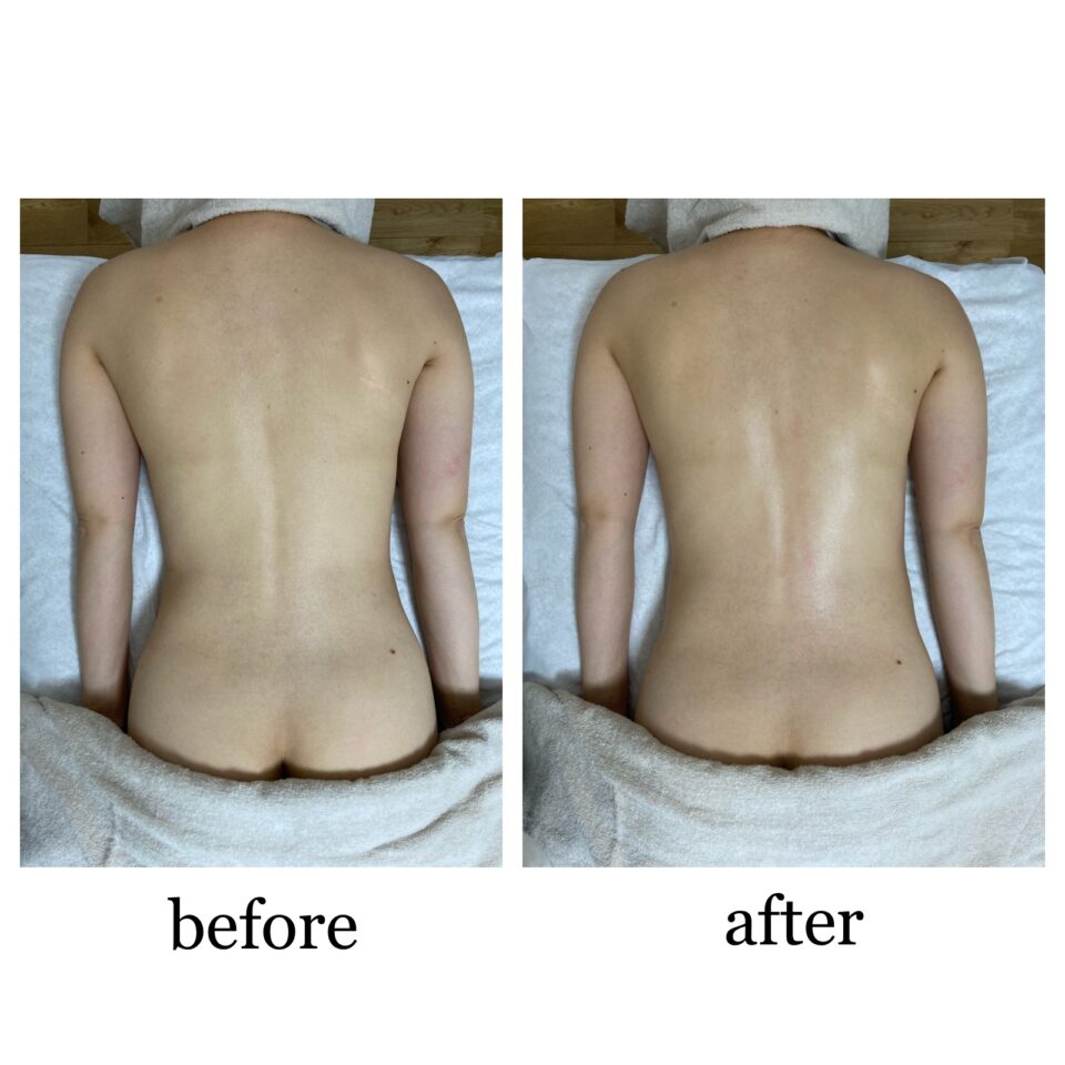 お背中のビフォーアフターのお写真もご希望があれば撮影いたしますので、お申し付けください。